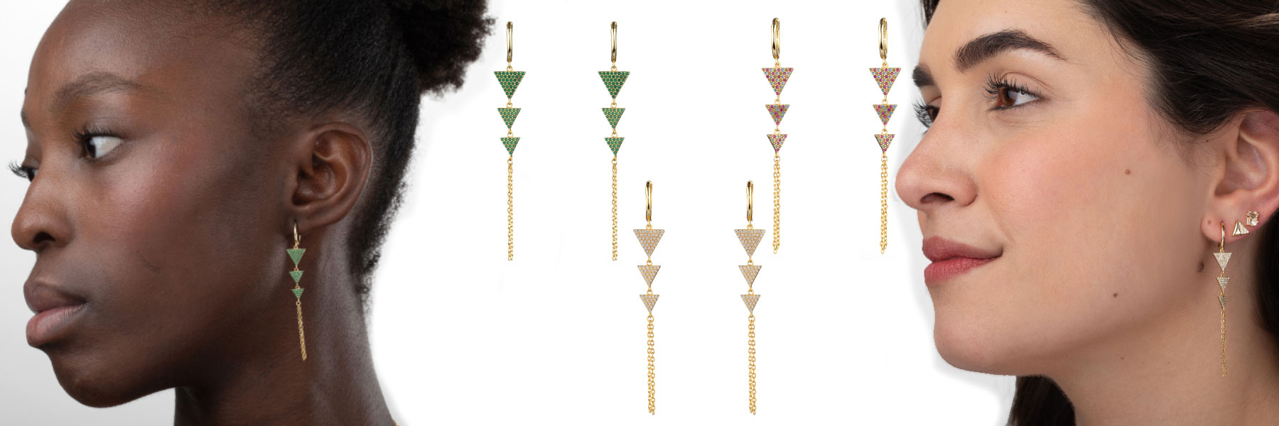 Pendientes Circonita - Triple Cadena - 50 mm - Bañado Oro y Plata Rodiada