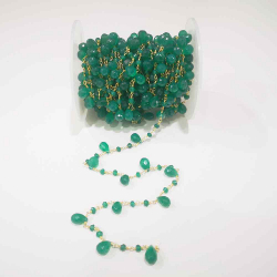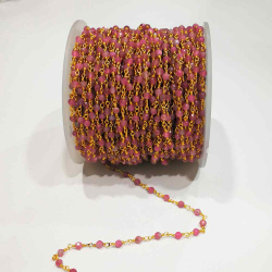 Cadena Rosario - Ruby Zoisita 2,5mm y 3mm - 1 Metro - Plata y Bañado oro