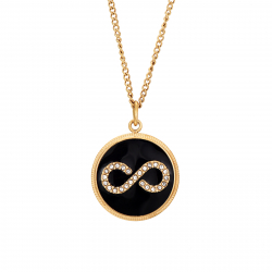 Collar Acero Infinito - Enamel Negro - Circonita Blanca - 40 + 8 cm - Color Oro