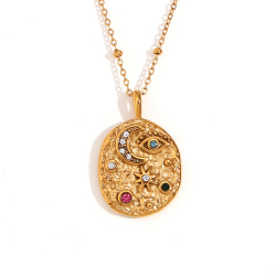 Collar Acero Circonita Multi - Cielo Místico 20*17 mm - 40+5 cm - Acero y Oro Color