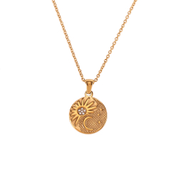 Collar Acero Circonita - Luna Sol 18 mm - 41+5 cm - Acero y Oro Color