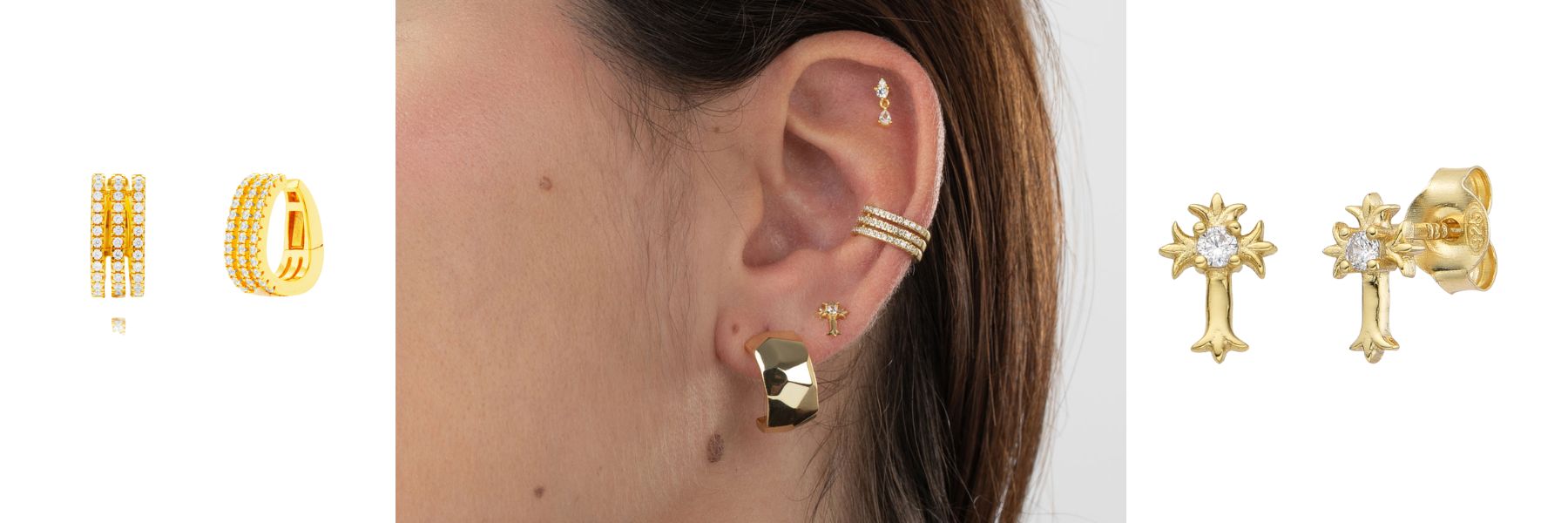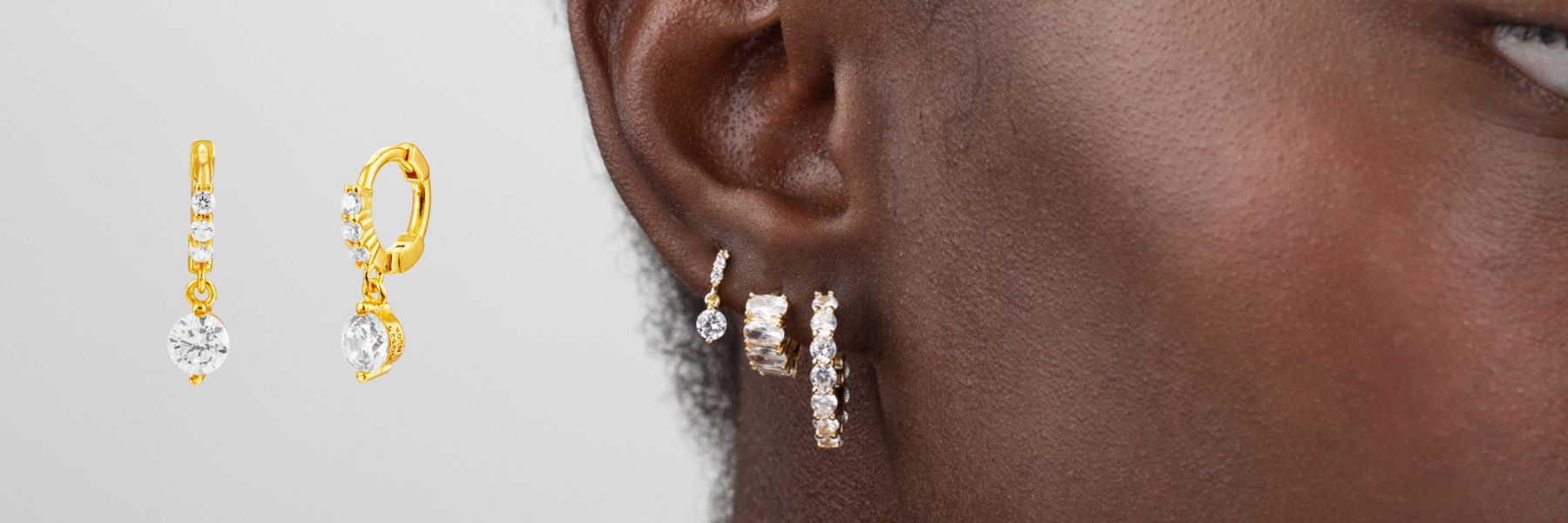 Huggies 8 mm + 4 mm Zirkonia-Ohrringe - Silber Vergoldet und rhodiniertes Silber