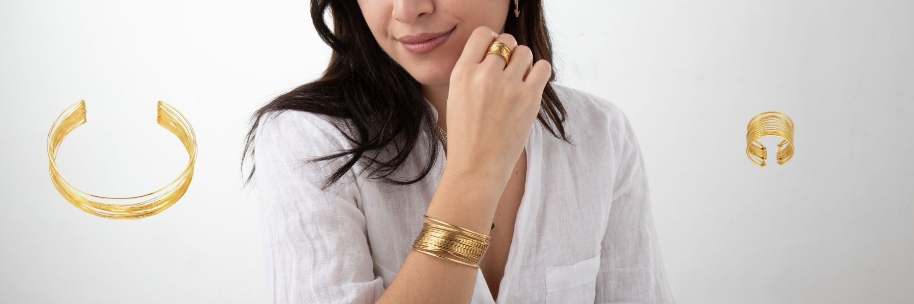 Armband Glatte Armspange - Fäden - 30 mm - Verstellbar - Farbe Gold und Farbe Stahl