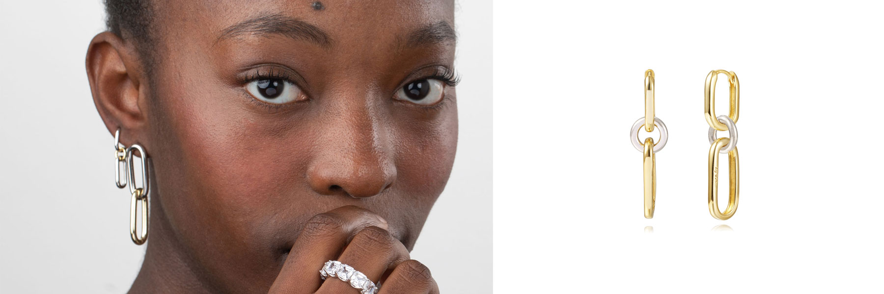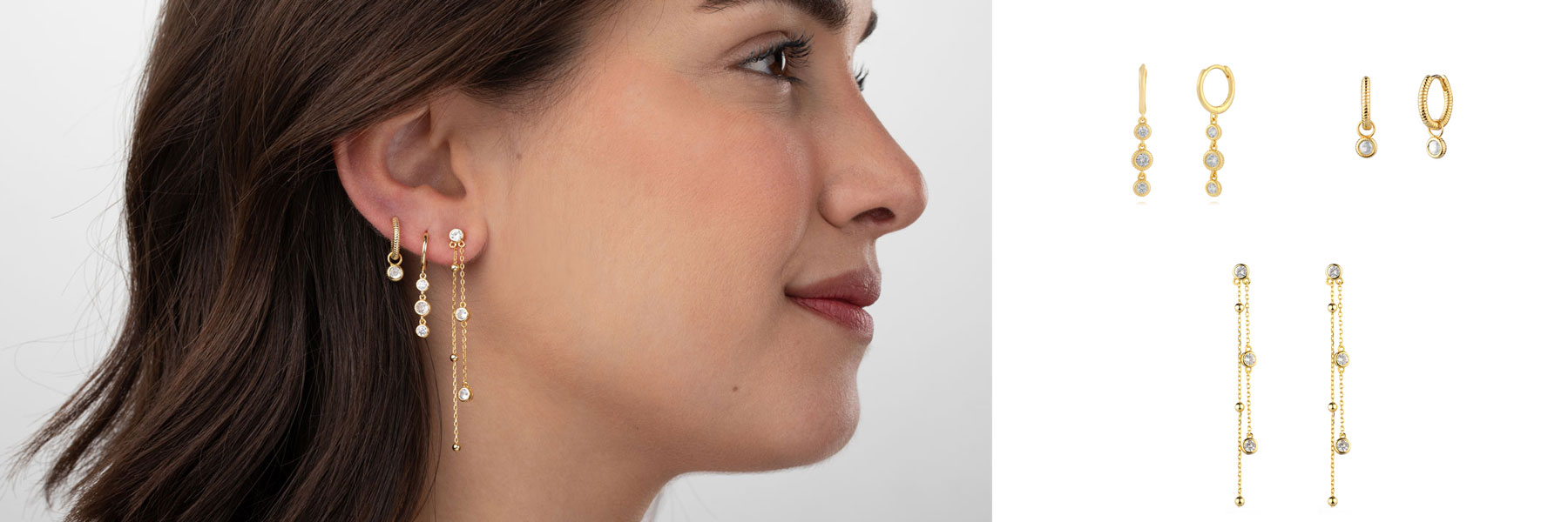 Zirkon-Ohrringe – Dreifachkette – 50 mm – vergoldet und rhodiniertes Silber