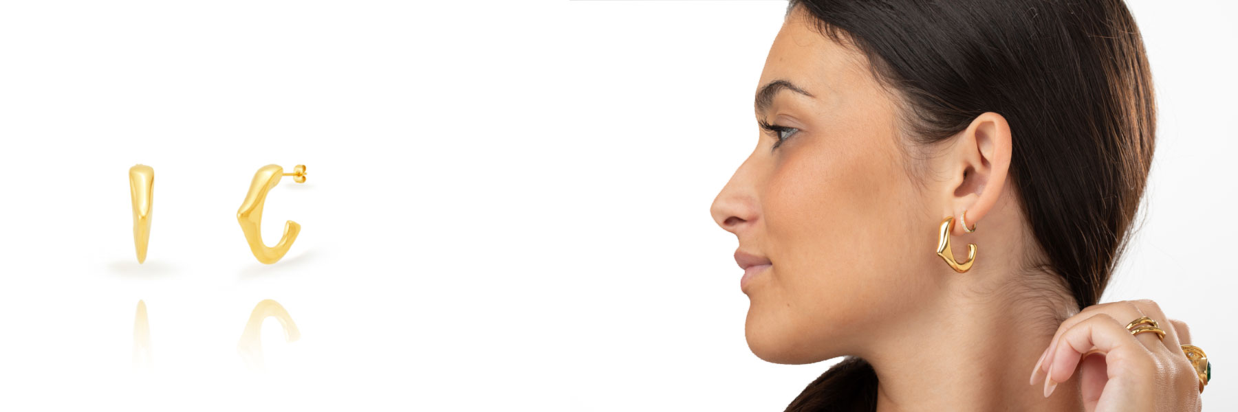 Aro Pendientes – Dreifaches Dreieck – Circonita 55 mm – Gold und Plata Rodiada