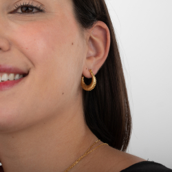 New Arrivals Ref: PAL0230 Steel Earrings Stripes -Semi Hoop 20 mm - Gold Color and Steel Available