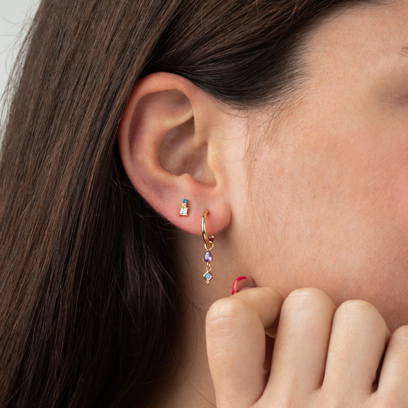 Pendiente Circonita Topaz Azul 6.6 mm Bañado Oro