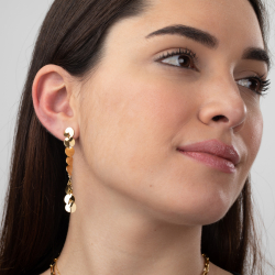 Pendiente Acero - Aro 12 mm - Conjunto de Hojas - 60 mm - Color Oro y Plata